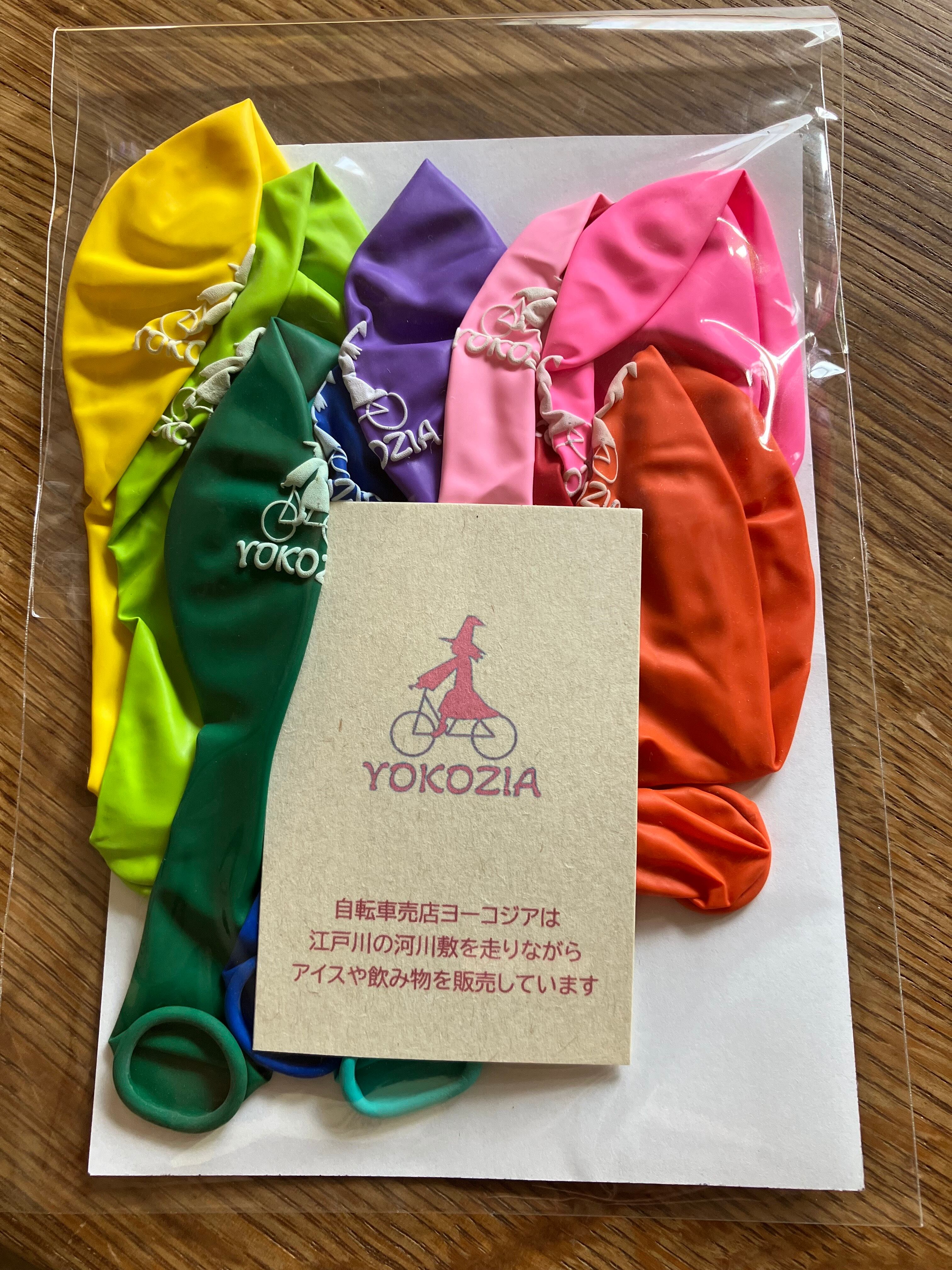 自転車売店ヨーコジアの2周年を記念して制作した、ロゴ入り風船10個セットです。